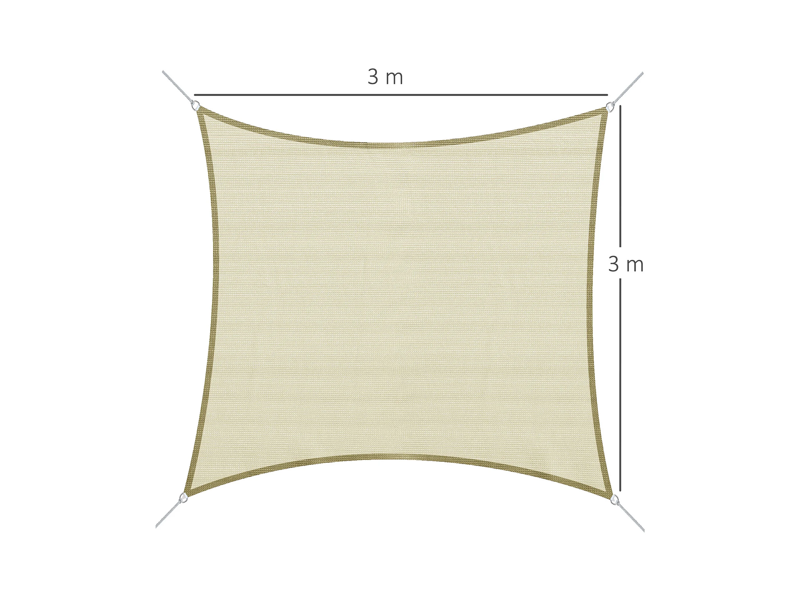 Voile d'ombrage carré 3 x 3 m polyester imperméabilisé haute densité 160 g/m² crème