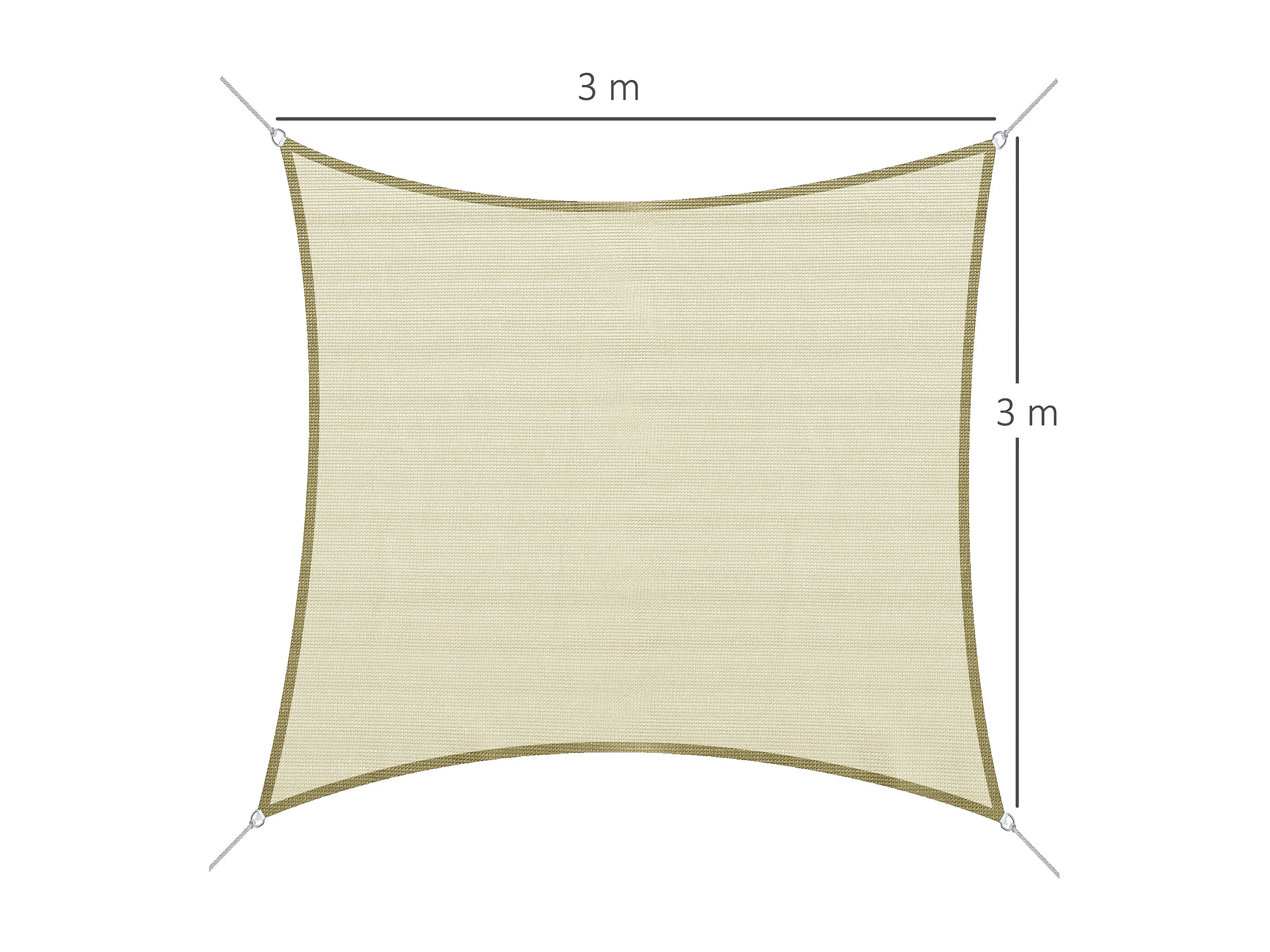 Voile d'ombrage carré 3 x 3 m polyéthylène haute densité résistant aux UV crème