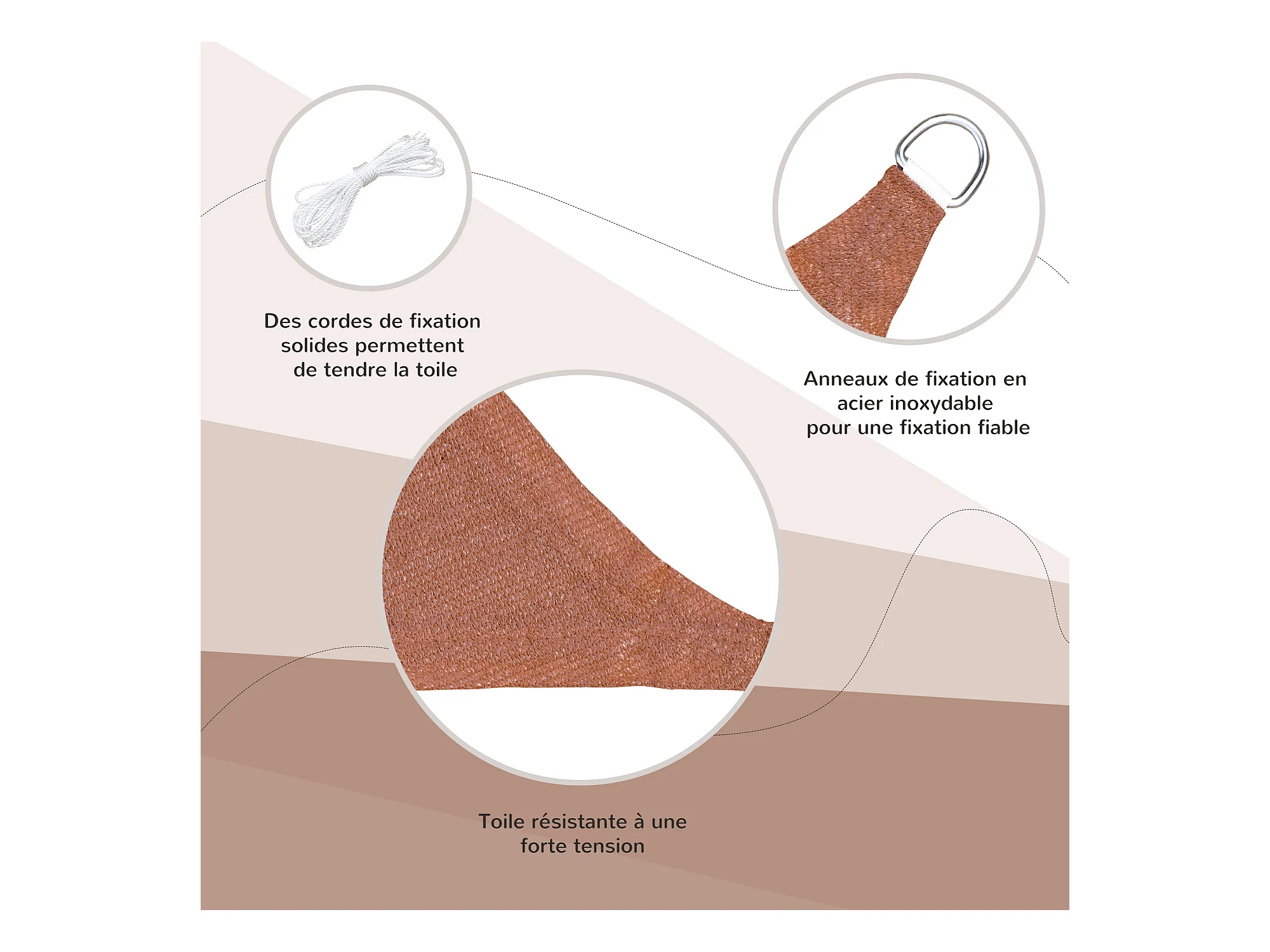 Voile d'ombrage triangulaire grande taille 4 x 4 x 4 m polyéthylène haute densité résistant aux UV rouille