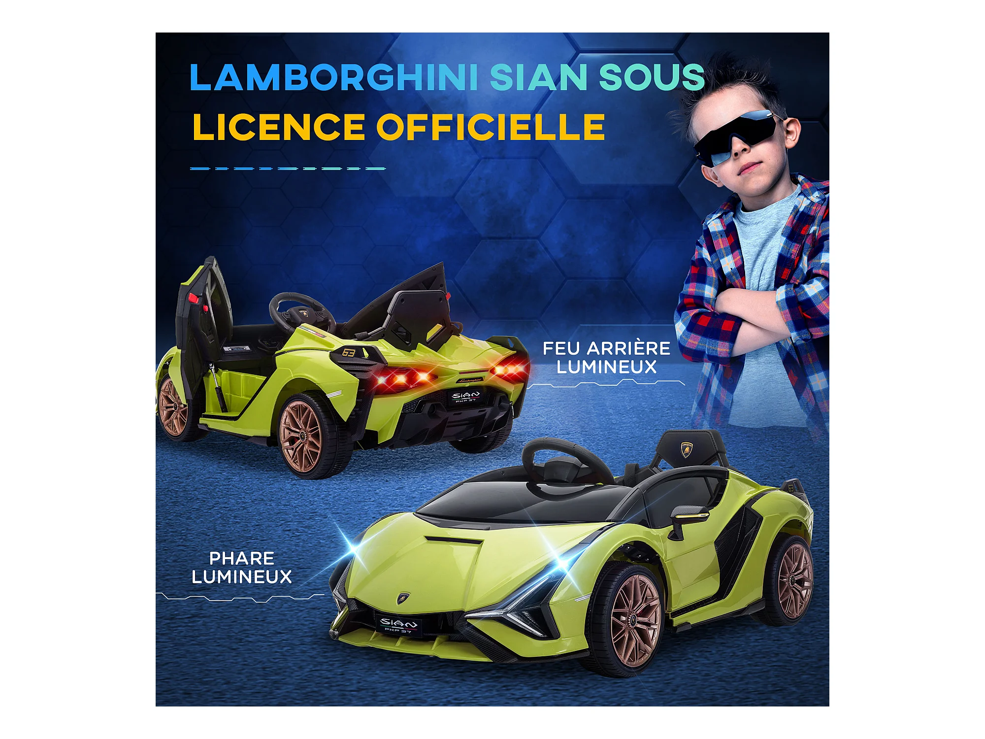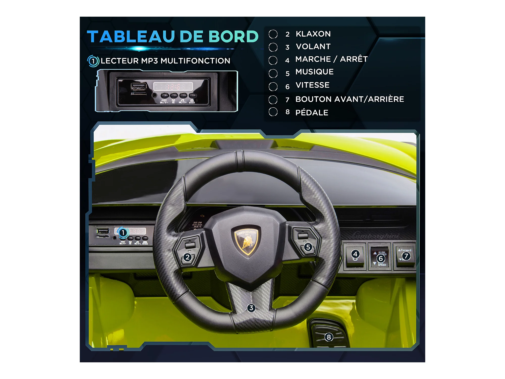 Voiture électrique enfant licence Lamborghini Aventador roadster SVJ télécommande effets sonores lumineux vert