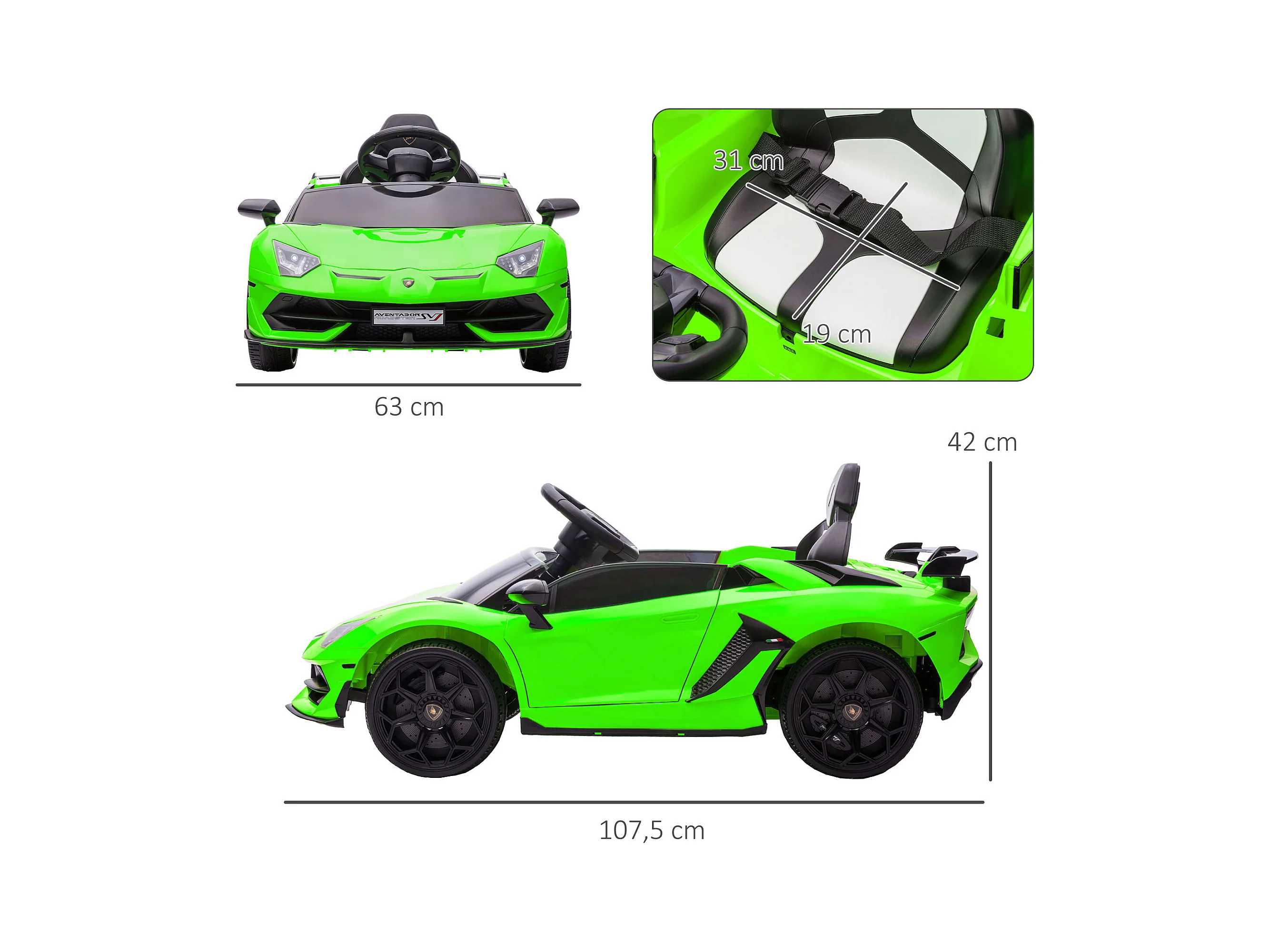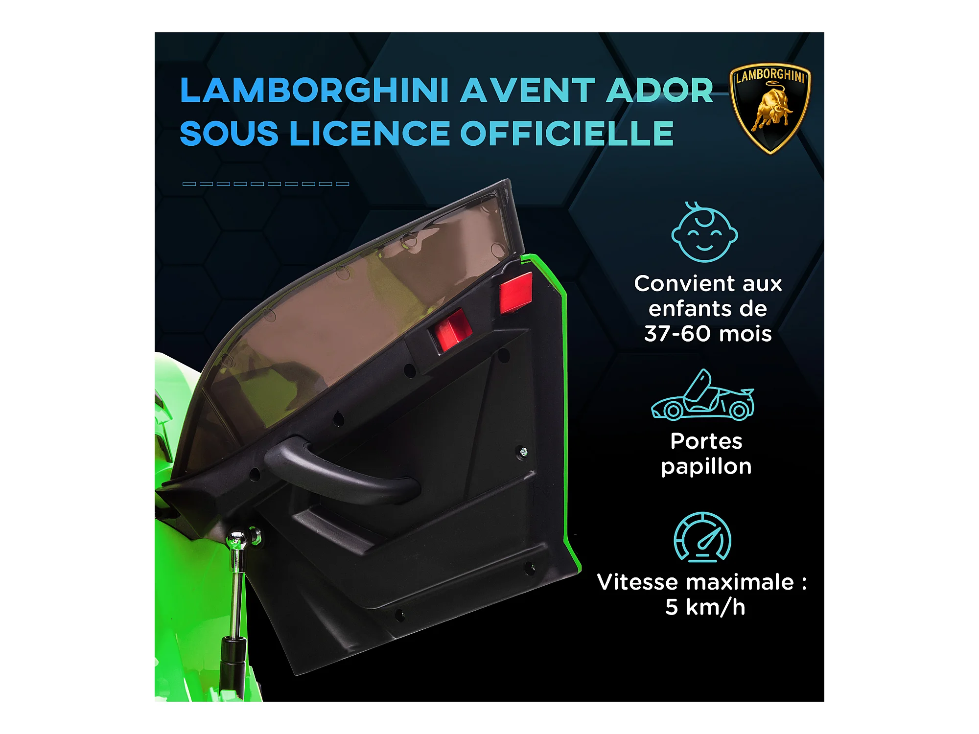 Voiture électrique enfant licence Lamborghini Aventador roadster SVJ télécommande effets sonores lumineux vert