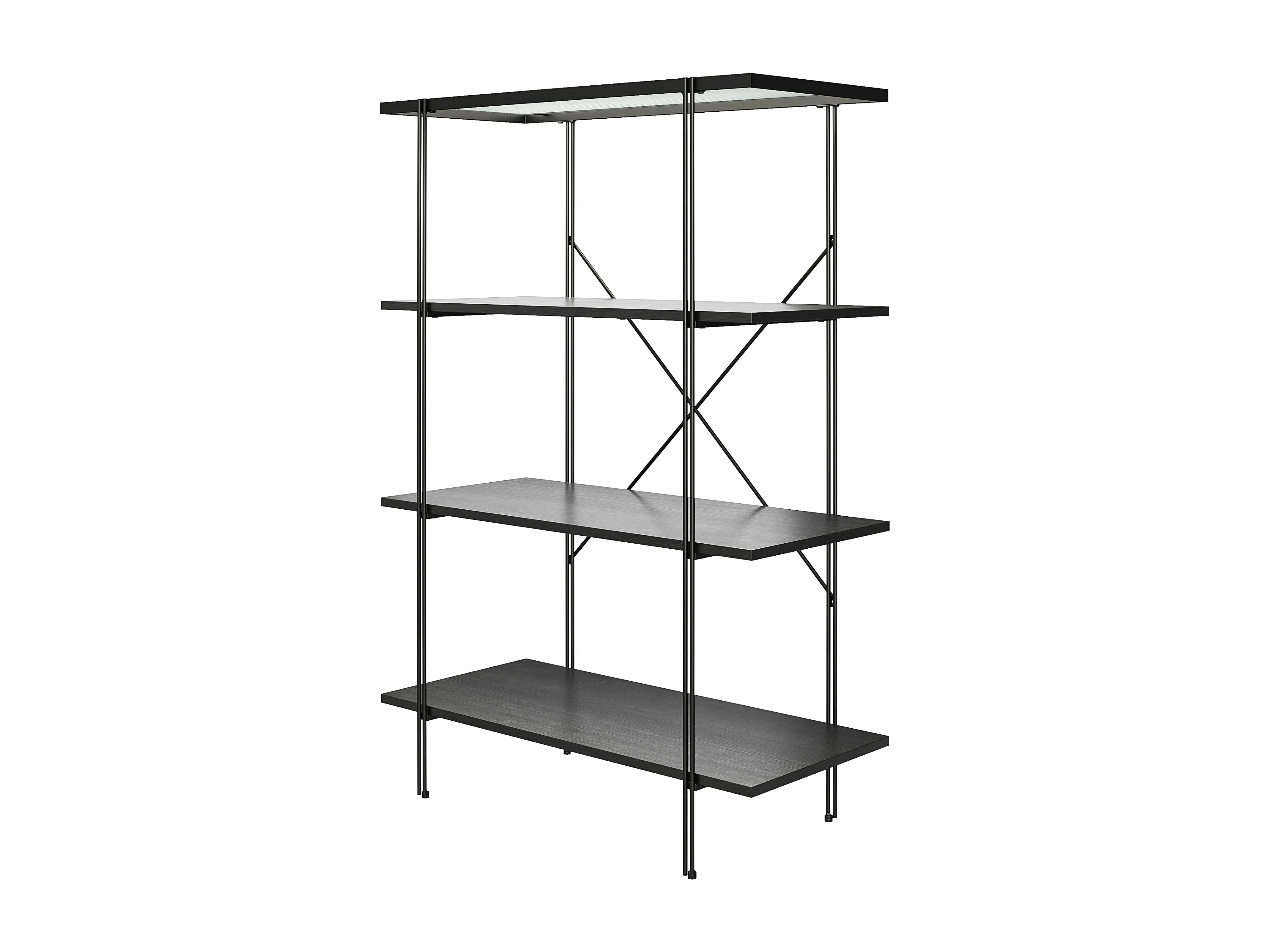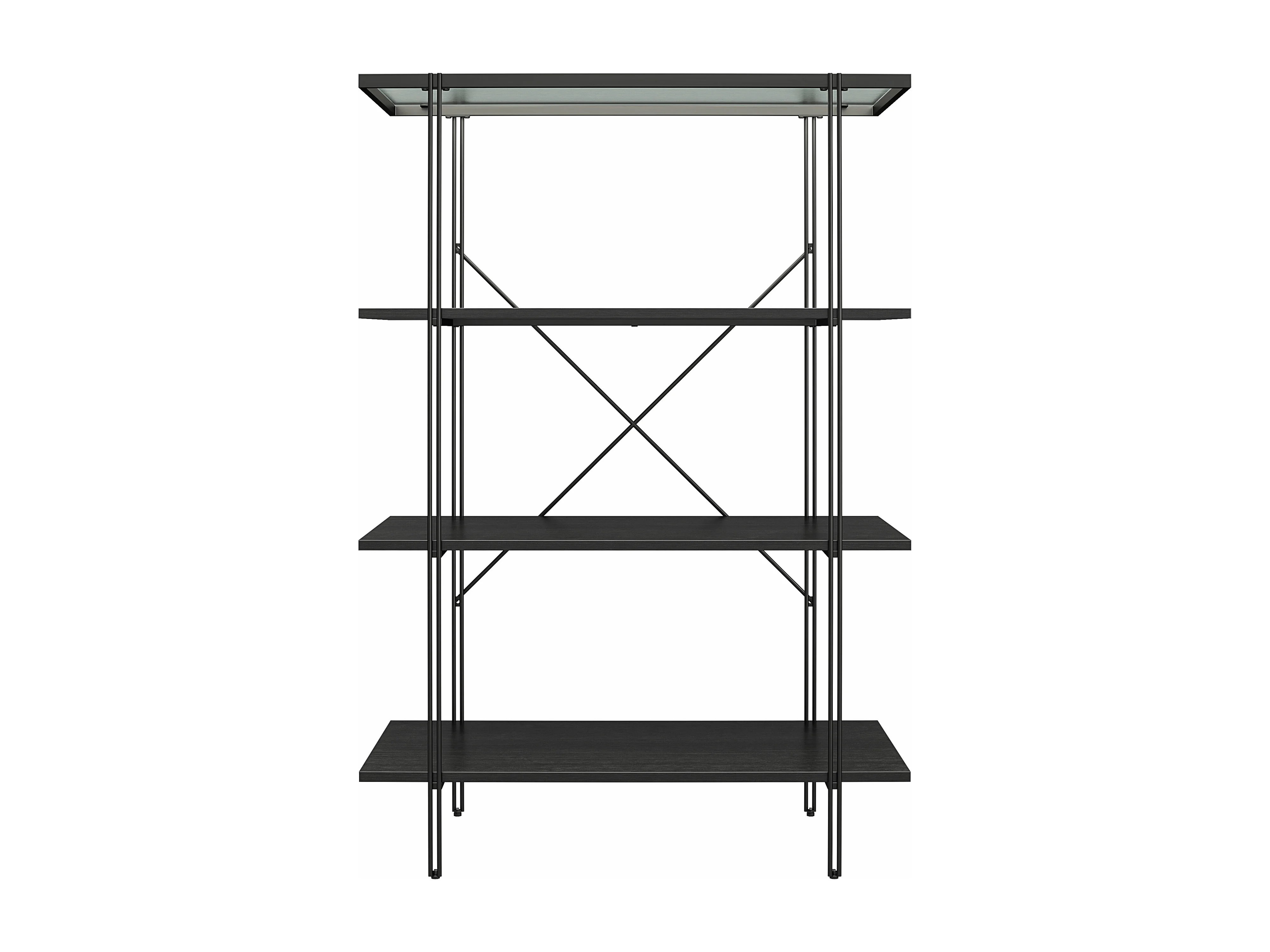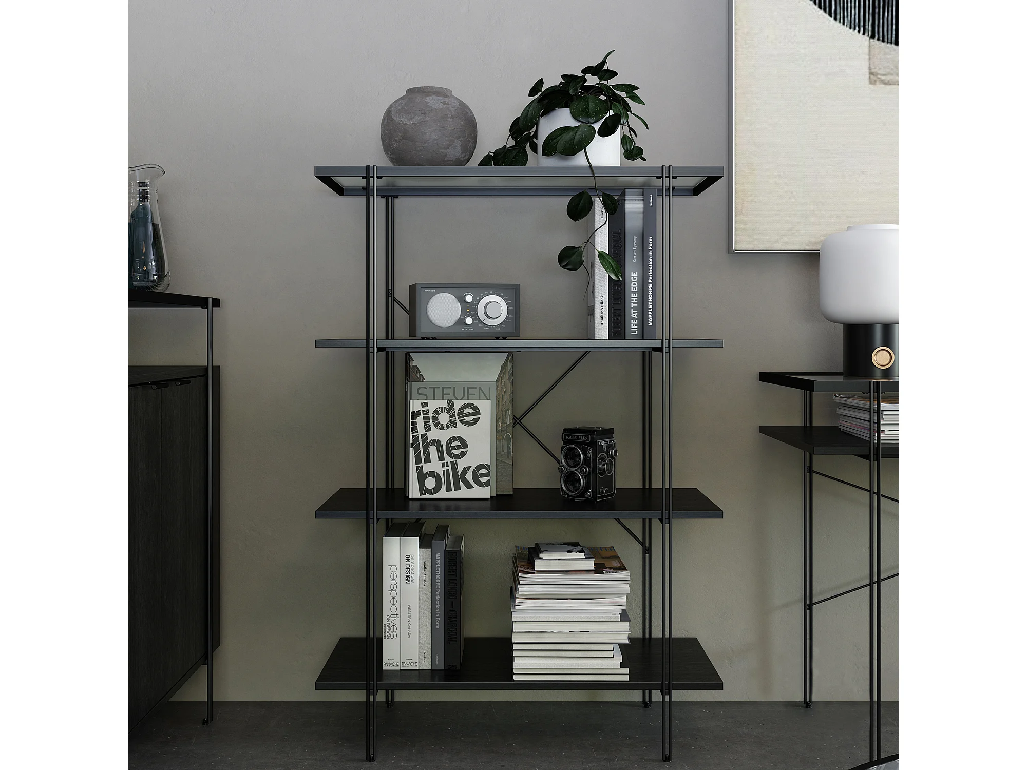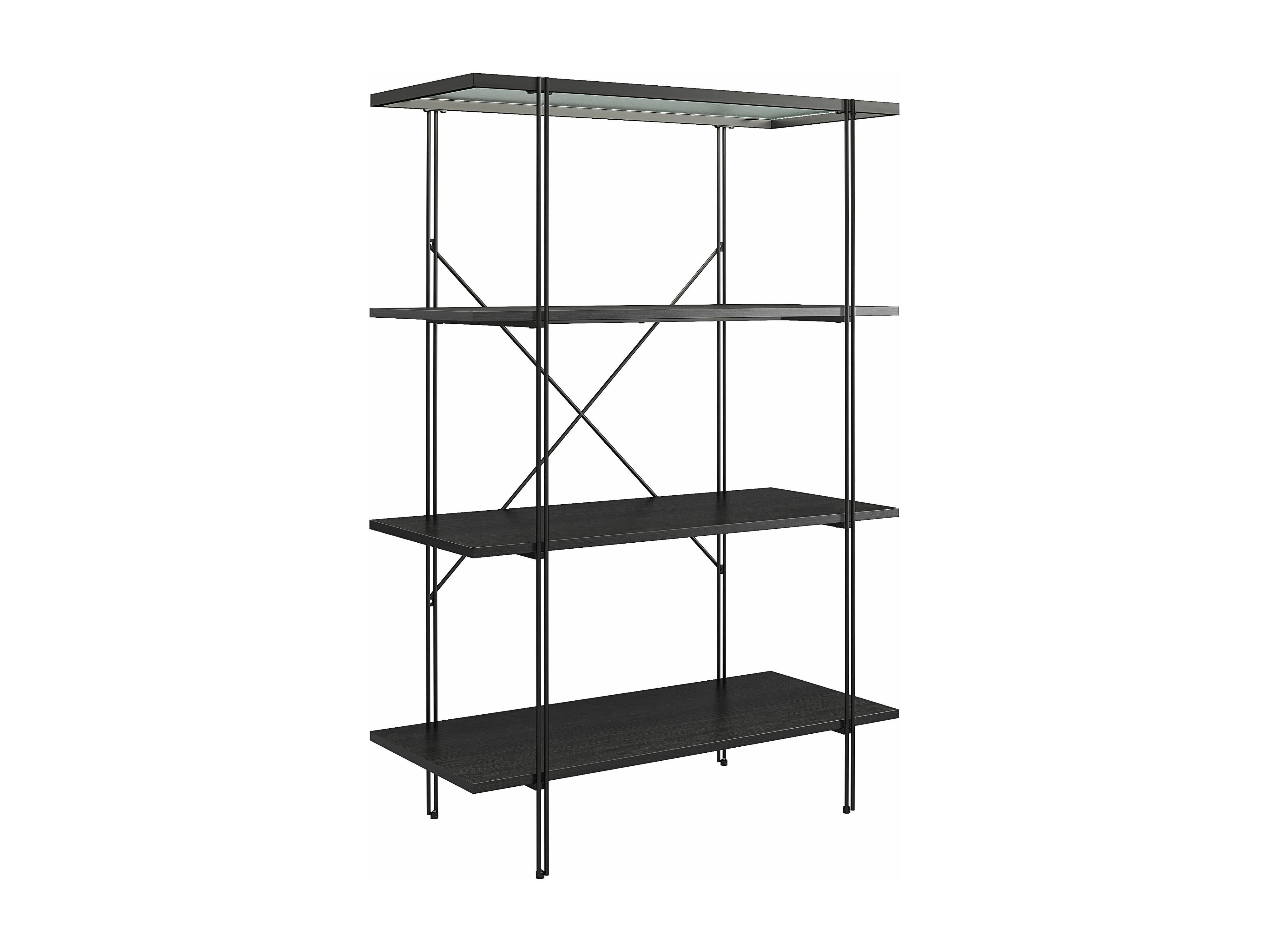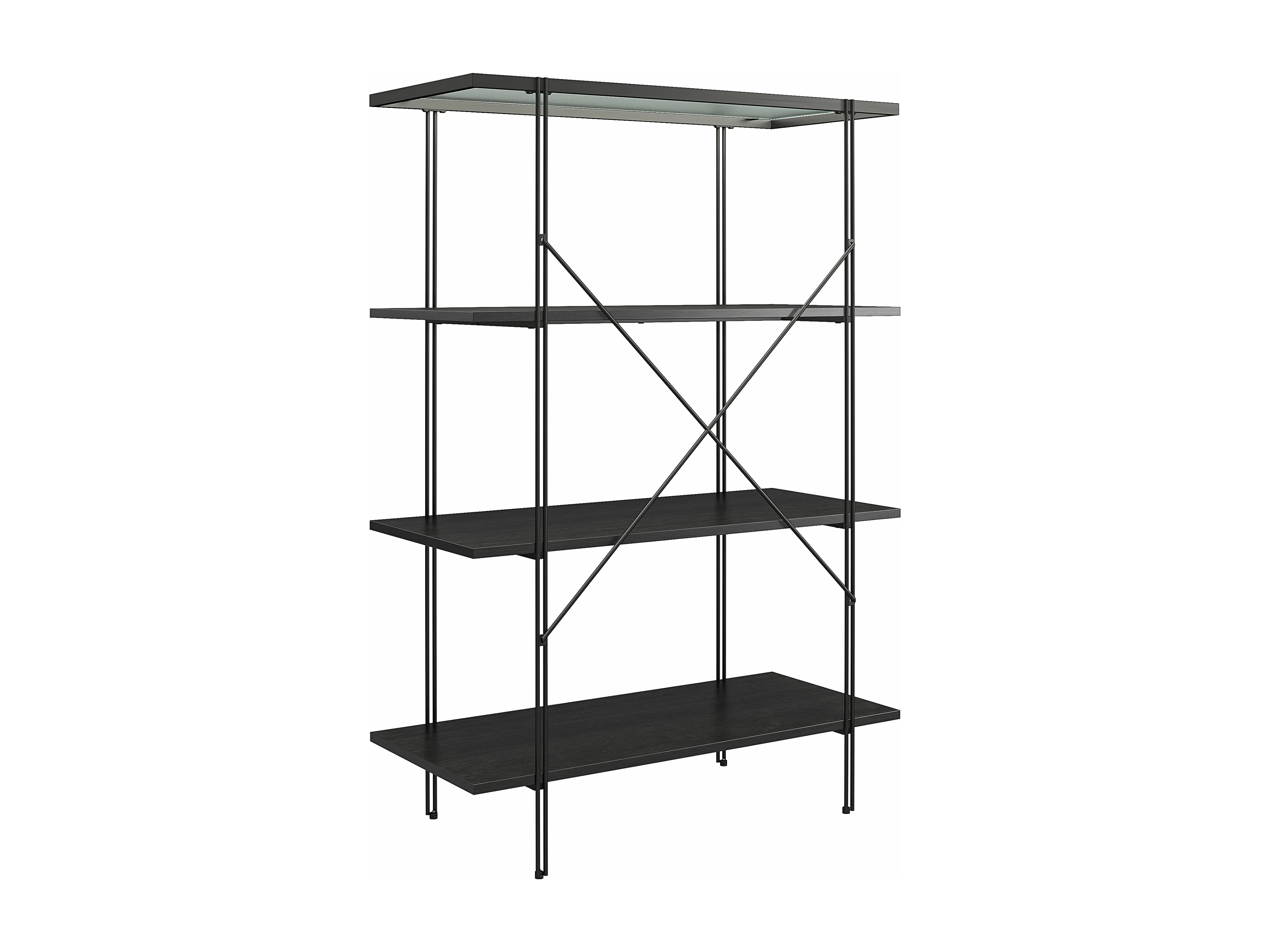 Wainwright | Bibliothèque á 3 étagères en aspect chêne noir et 1 étagère en verre