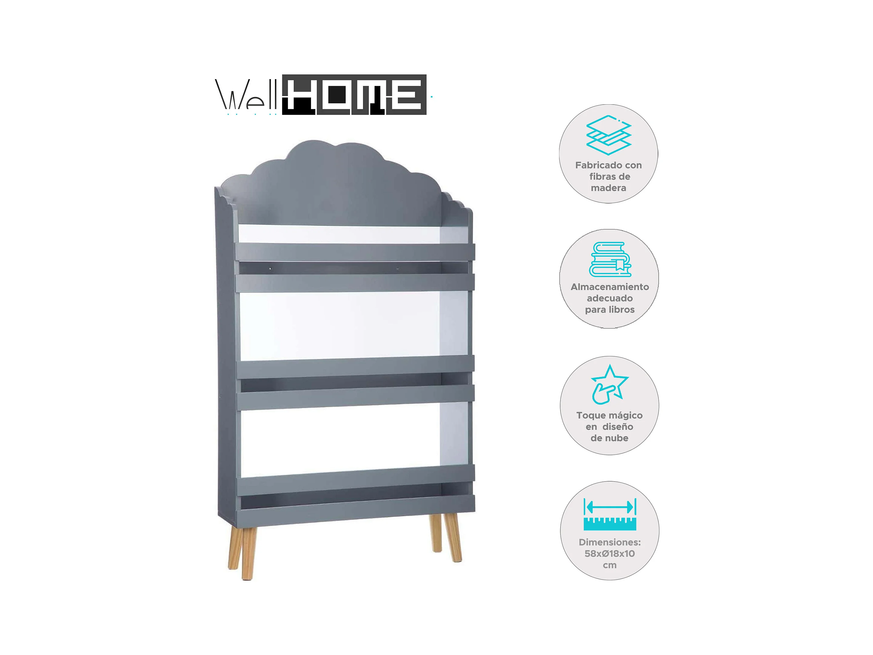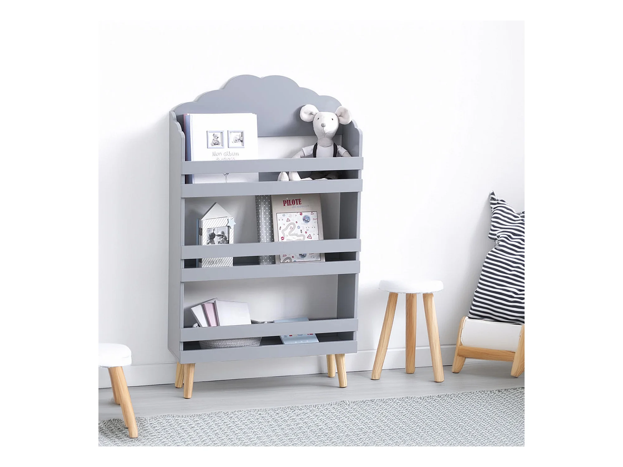 WELL HOME - Bibliothèque enfant 3 étagères gris