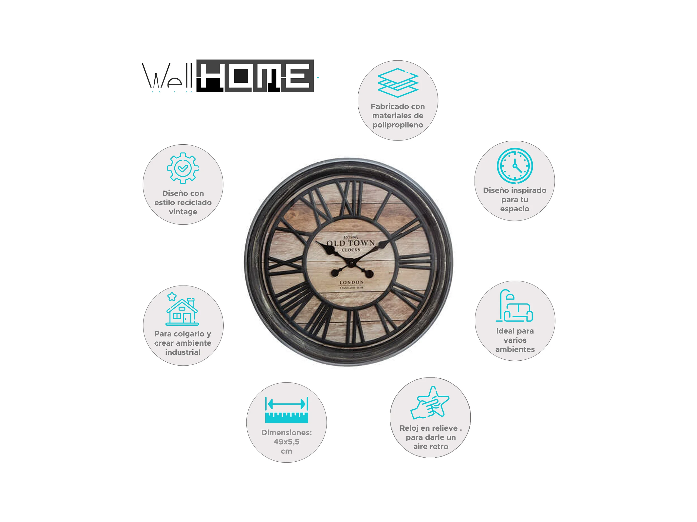 WELL HOME - Horloge décorative en relief en plastique Ø49x5cm