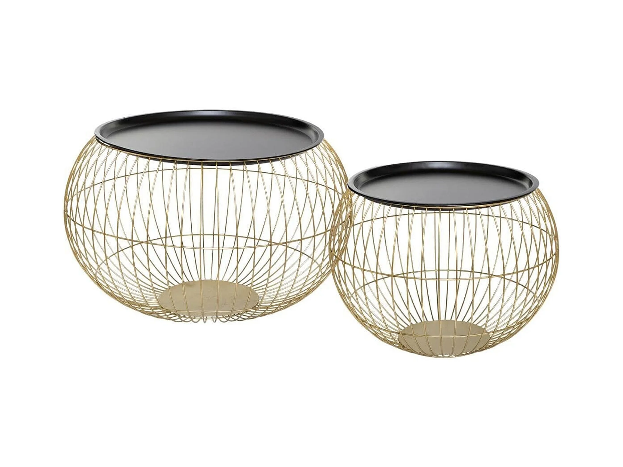 WELL HOME - Lot de 2 tables d'appoint glamour métallisées dorées et noires