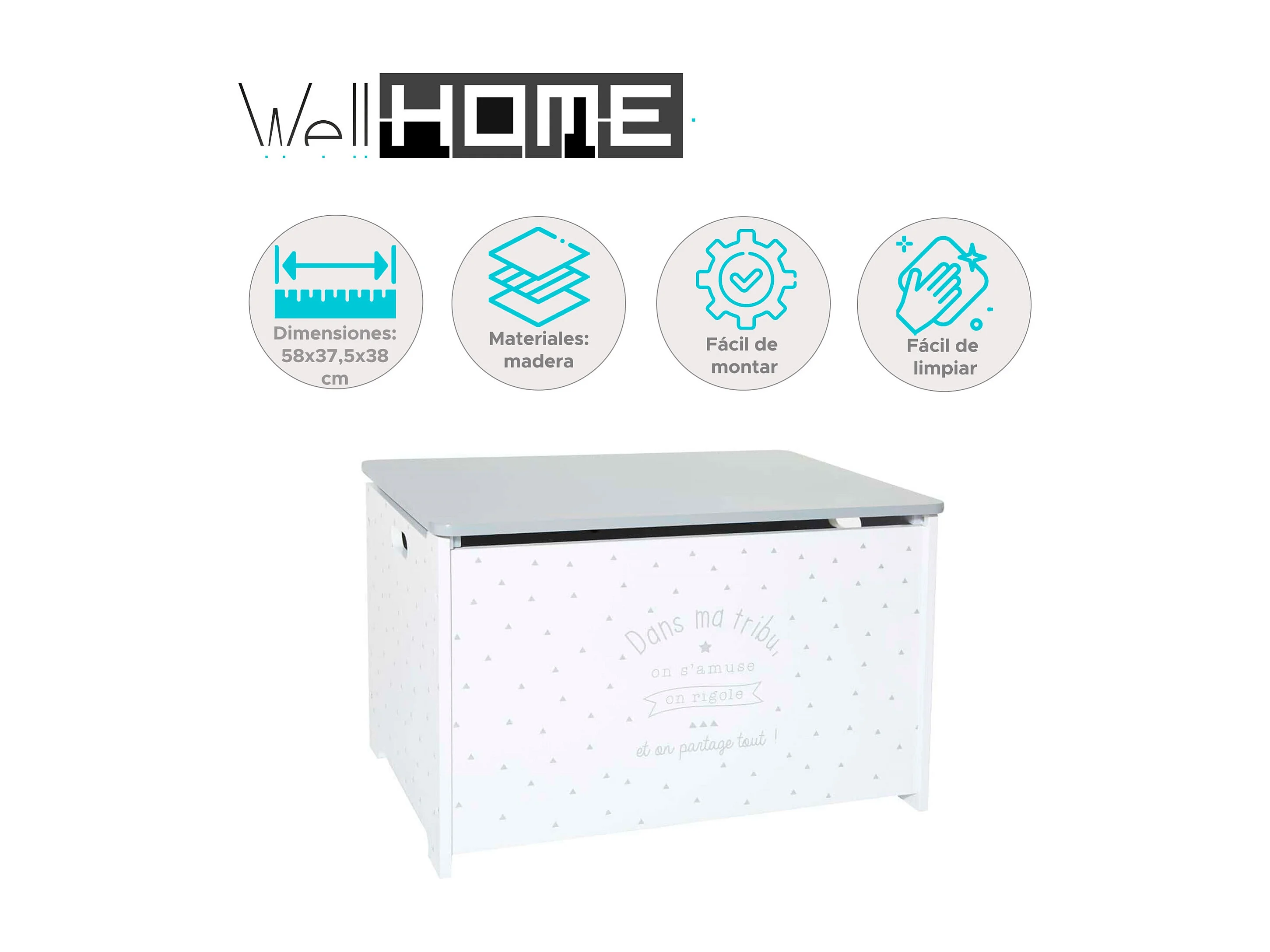 WELL HOME - Malle bébé blanc et gris 58 x 37,5 x 38 cm