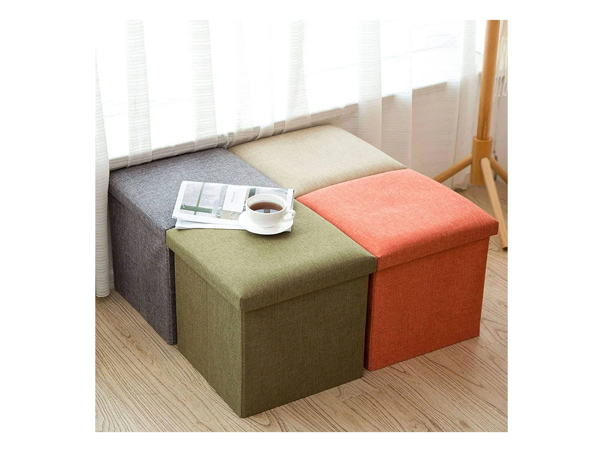 WELL HOME - Pack 2 Tabourets d'Organisation Vert Foncé