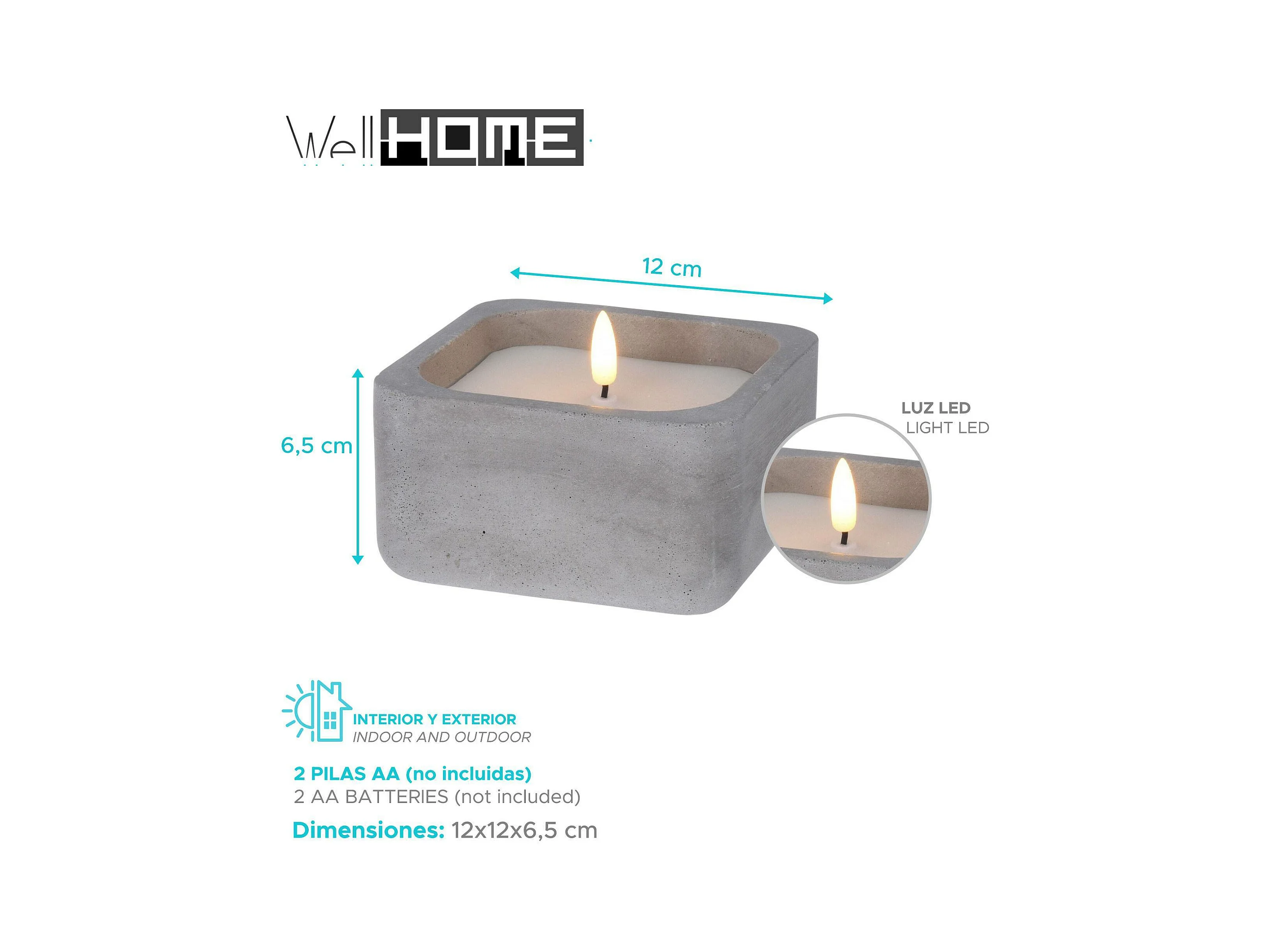 WELL HOME - Pack de 6 Bougies LED Carrées Grises