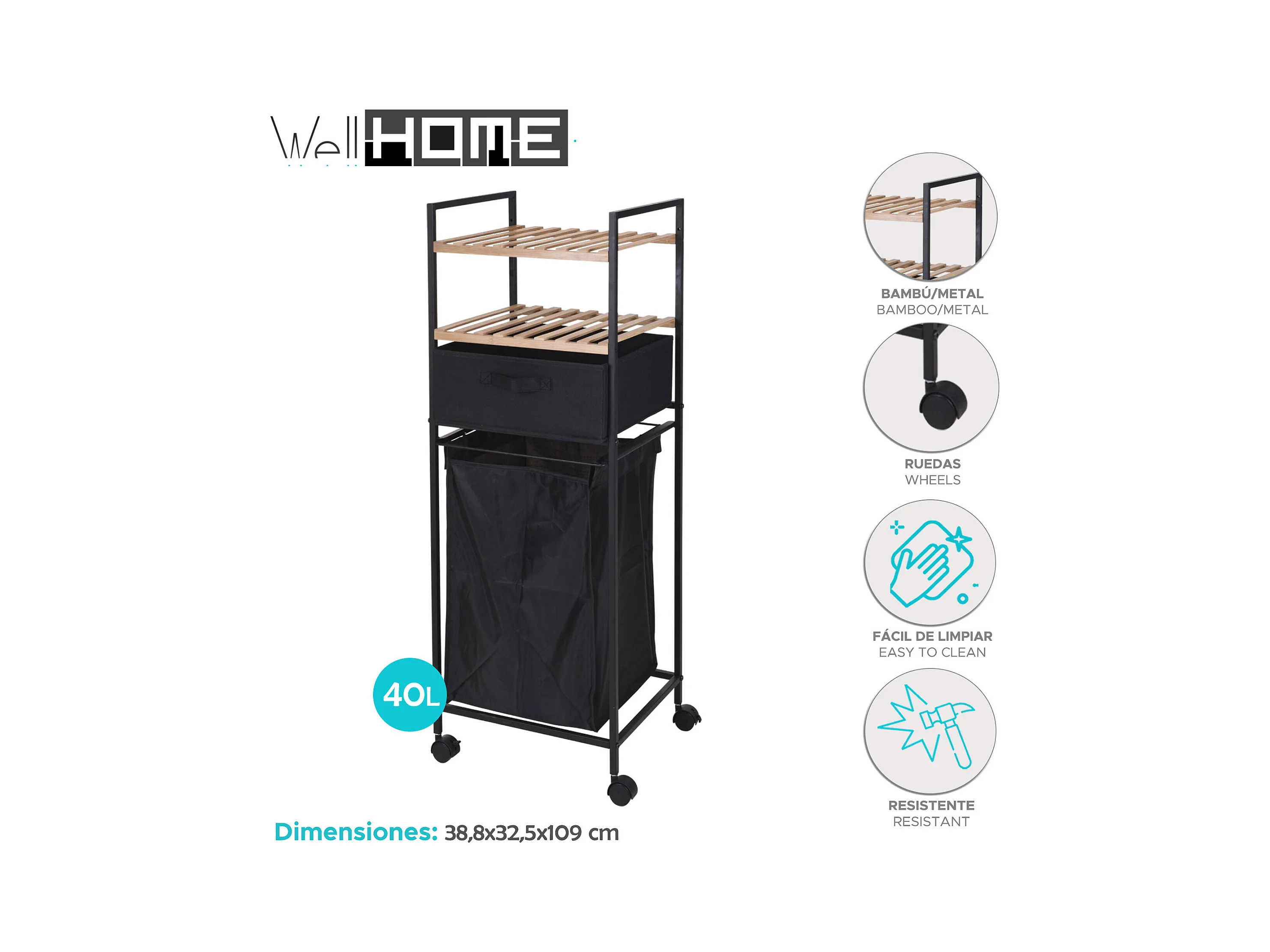 Well Home Porte-bagages avec 2 paniers + porte-bagages en polyester de 40 L, H.109 cm