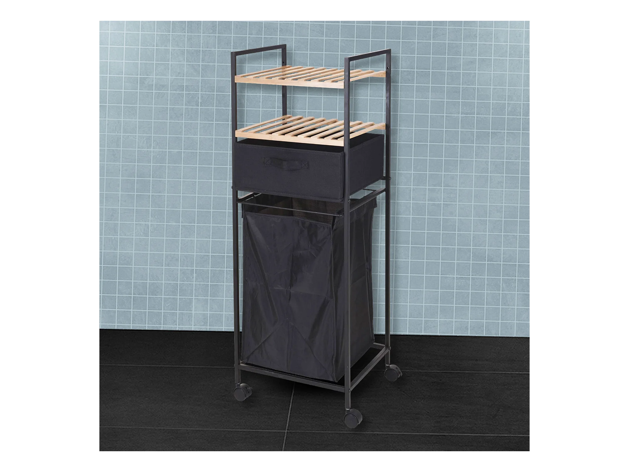 Bac à linge avec 2 compartiments de 46L et 2 étagères