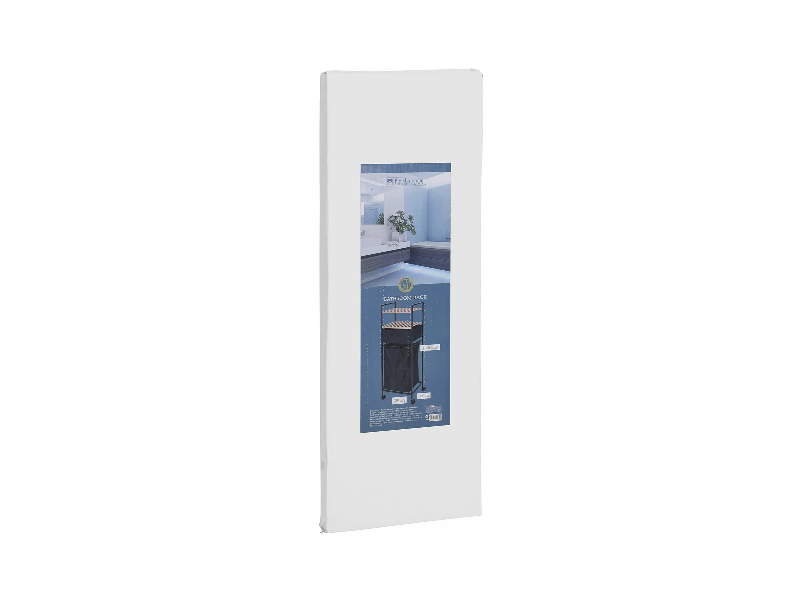 Porte-serviettes pliable 3 barres de suspension et 3 étagères en bambou pour salle de bains, structure métal noir