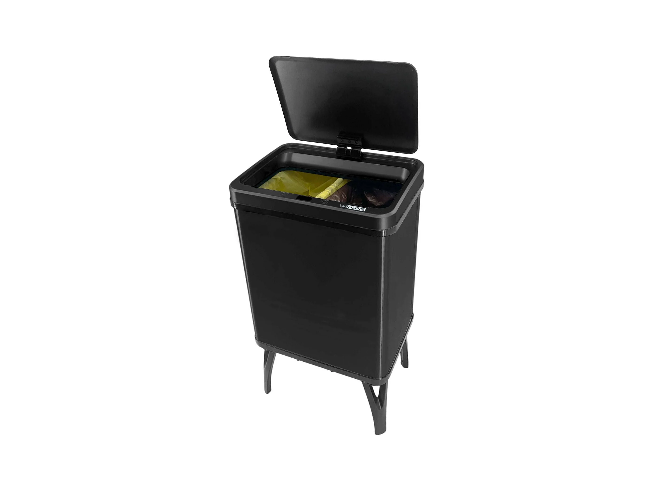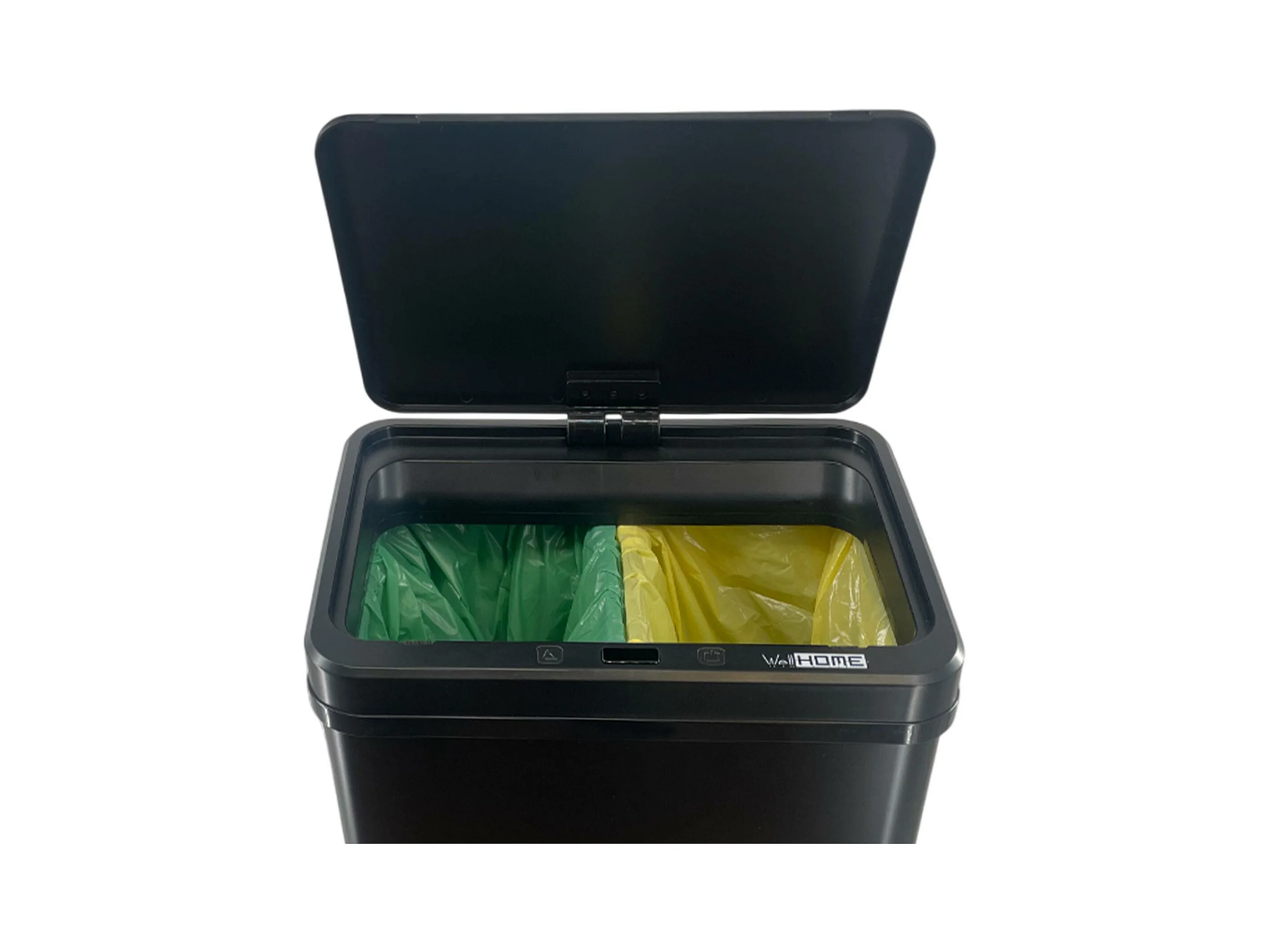 WELL HOME - Poubelle Intelligente sans Pieds pour Recyclage avec ouverture automatique et contact manuel 15L+15L 35,5x26x60cm Couleur Noir