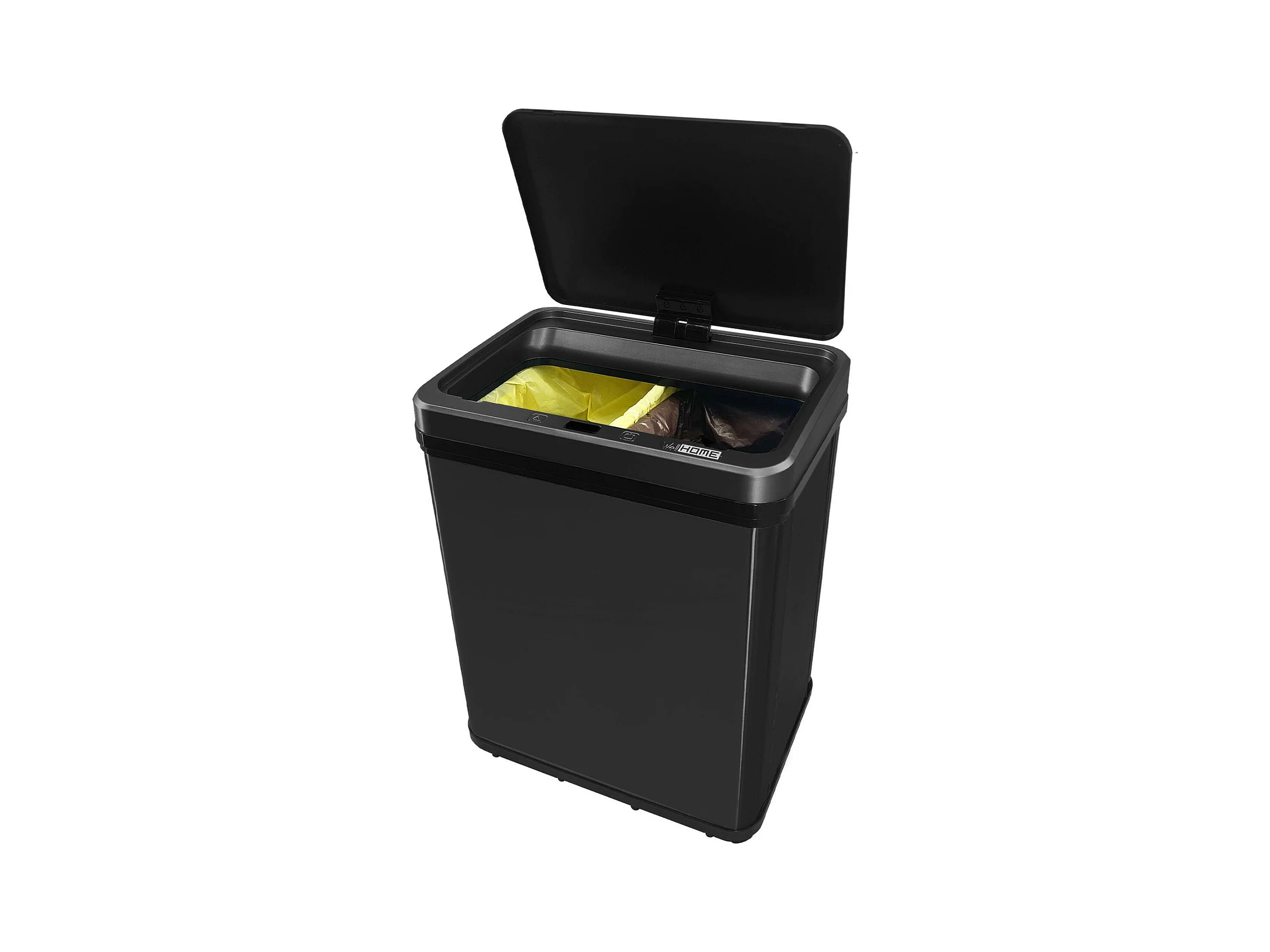 WELL HOME - Poubelle Intelligente sans Pieds pour Recyclage avec ouverture automatique et contact manuel 15L+15L 35,5x26x60cm Couleur Noir