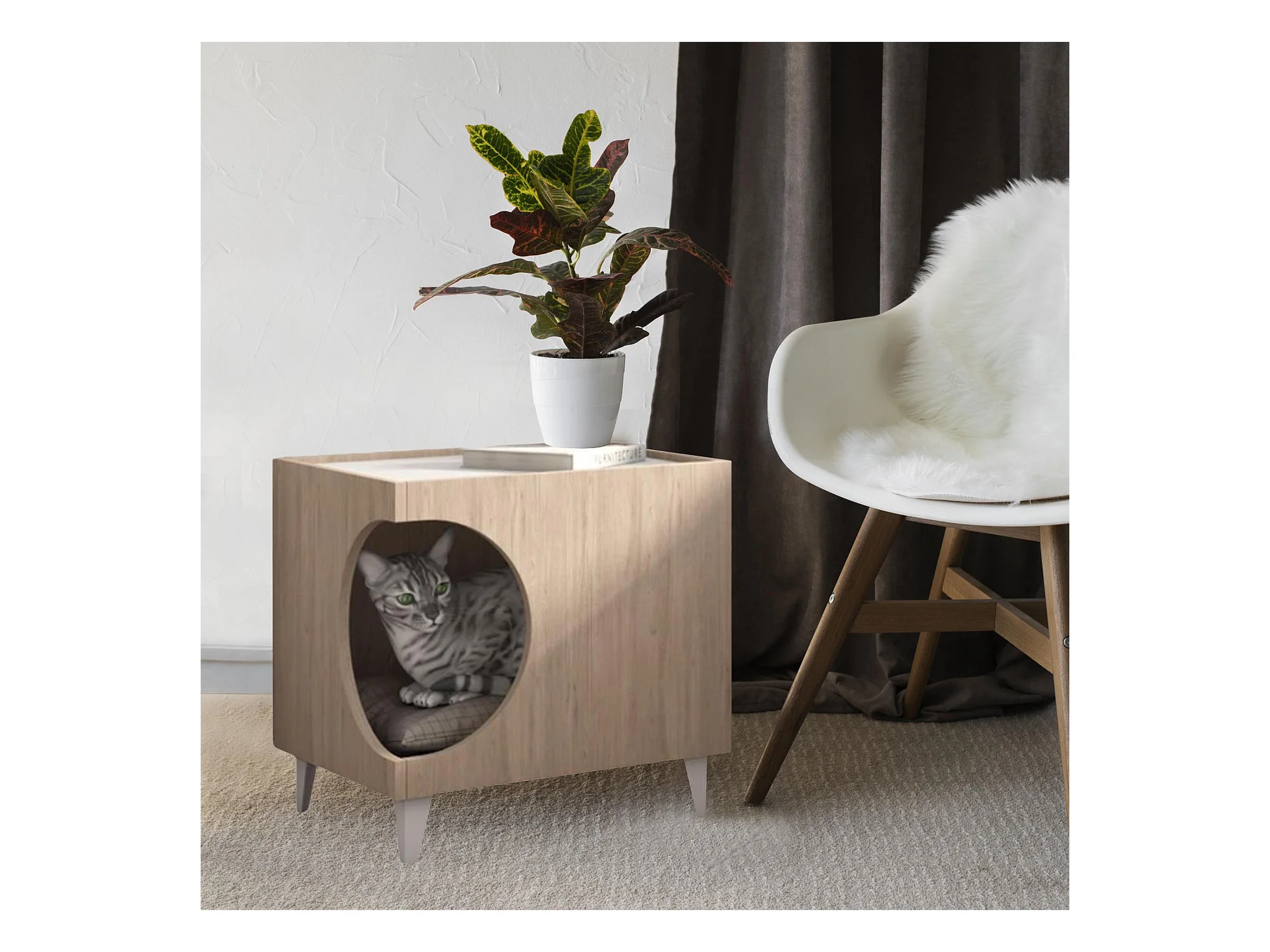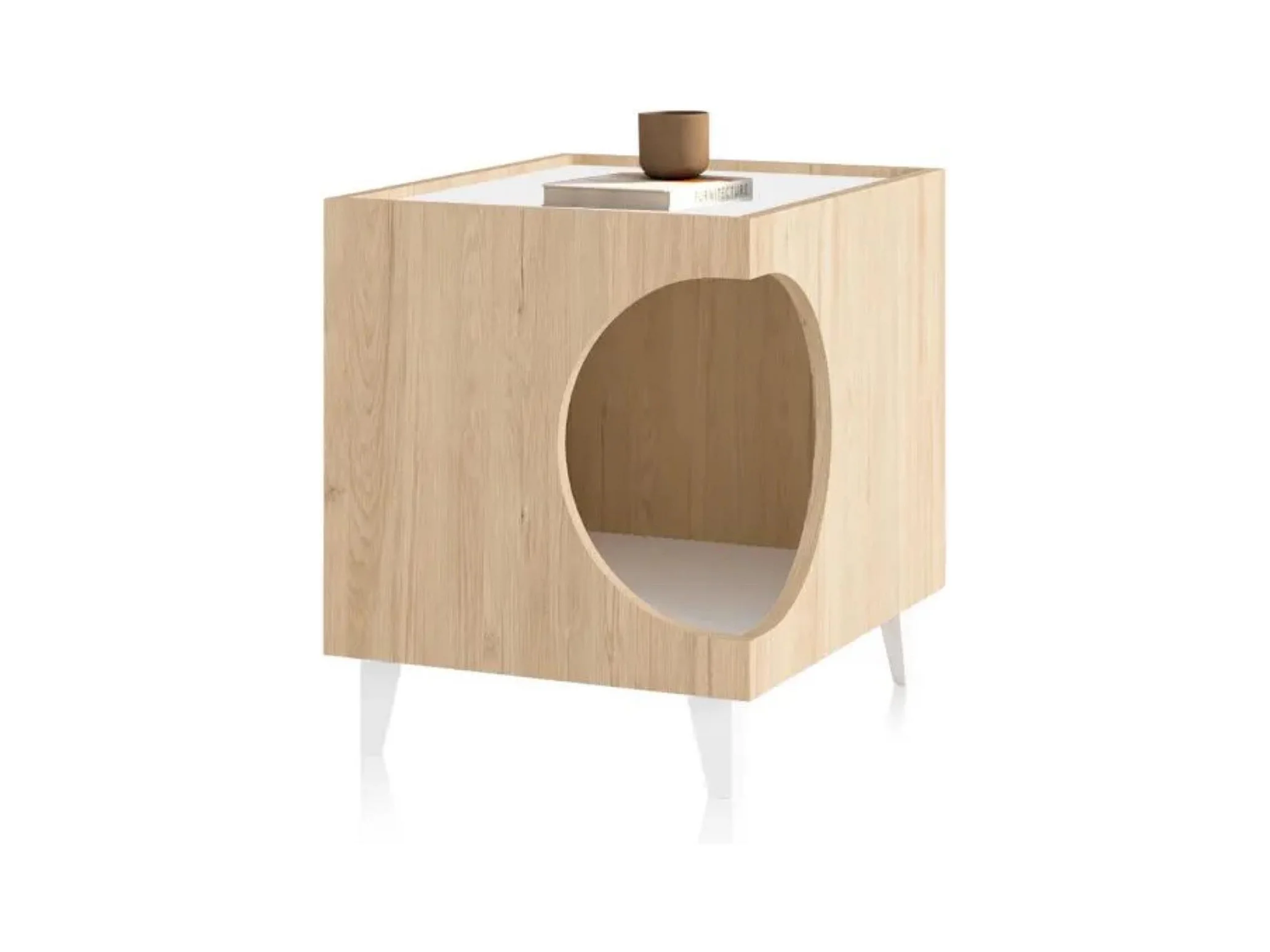 Well Home Table avec trou pour animaux de compagnie en couleur bois 50x40x40cm