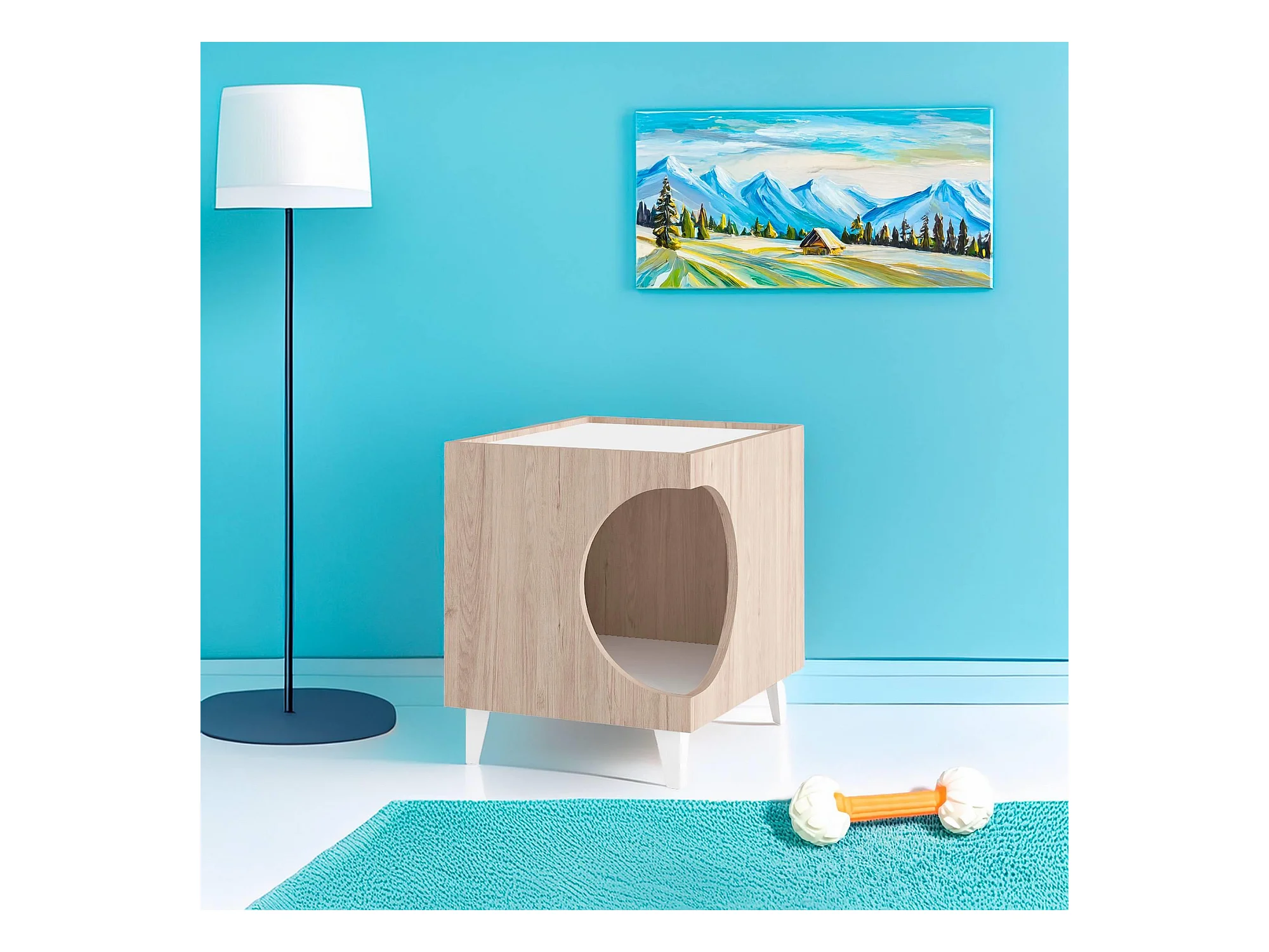 Niche pour chien design - dim. 60L x 42l x 40Hcm - PE bleu blanc
