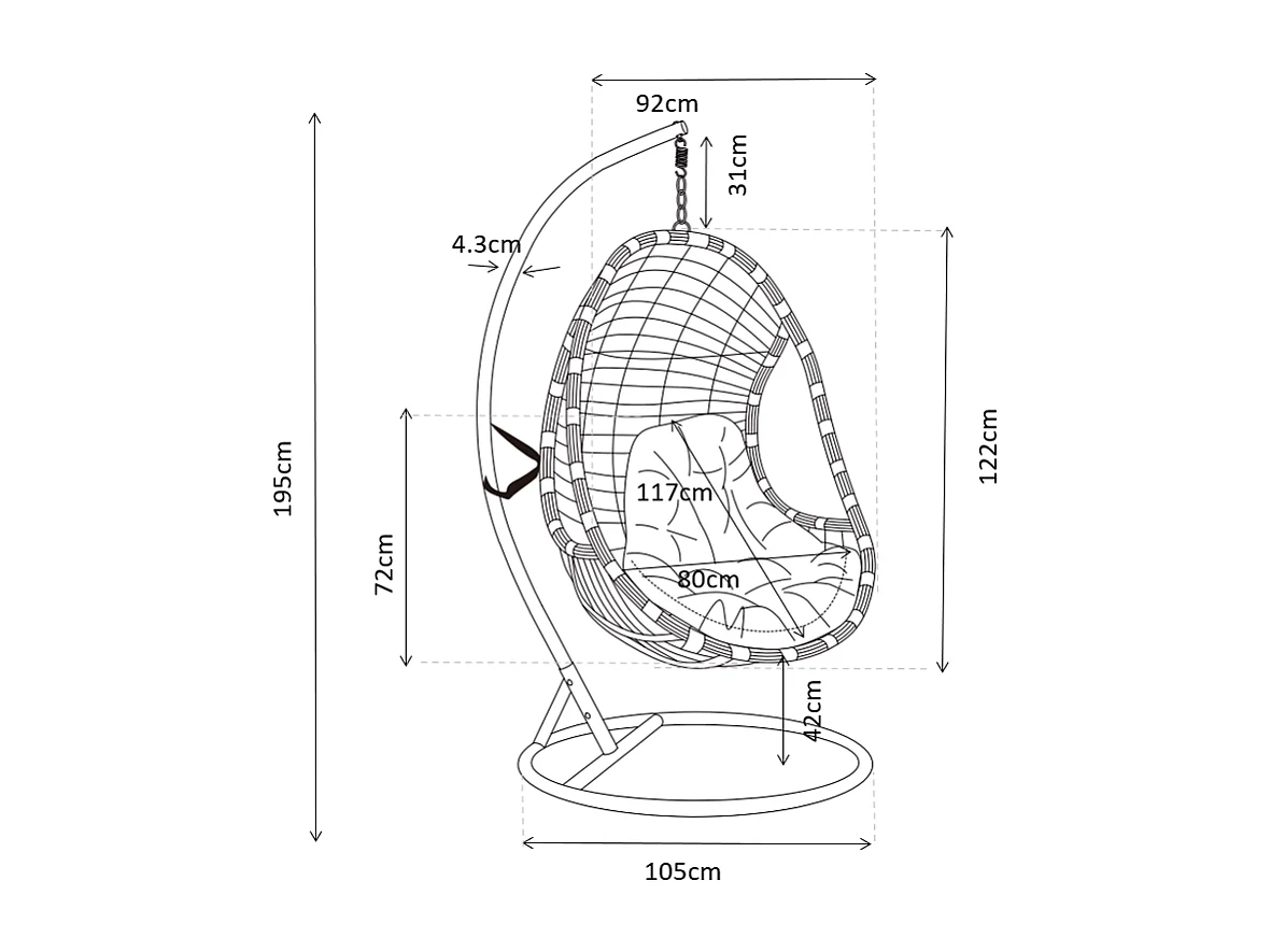 Fauteuil suspendu en résine tressée - Naturel clair avec coussin noir - ZALO de MYLIA