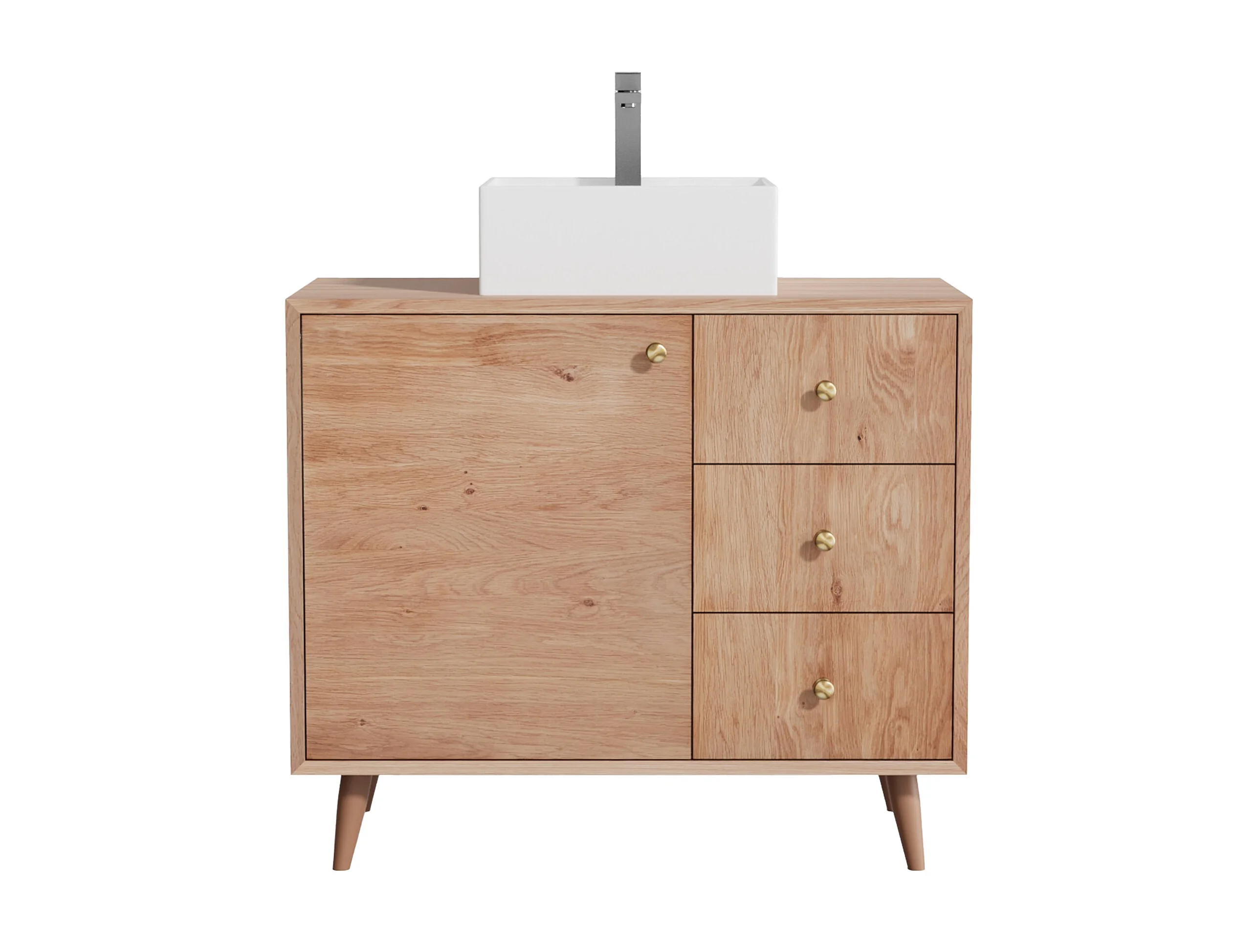 Meuble de salle de bain en chêne massif avec vasque à poser carrée et robinet - Naturel clair - 93 cm - ZARENO