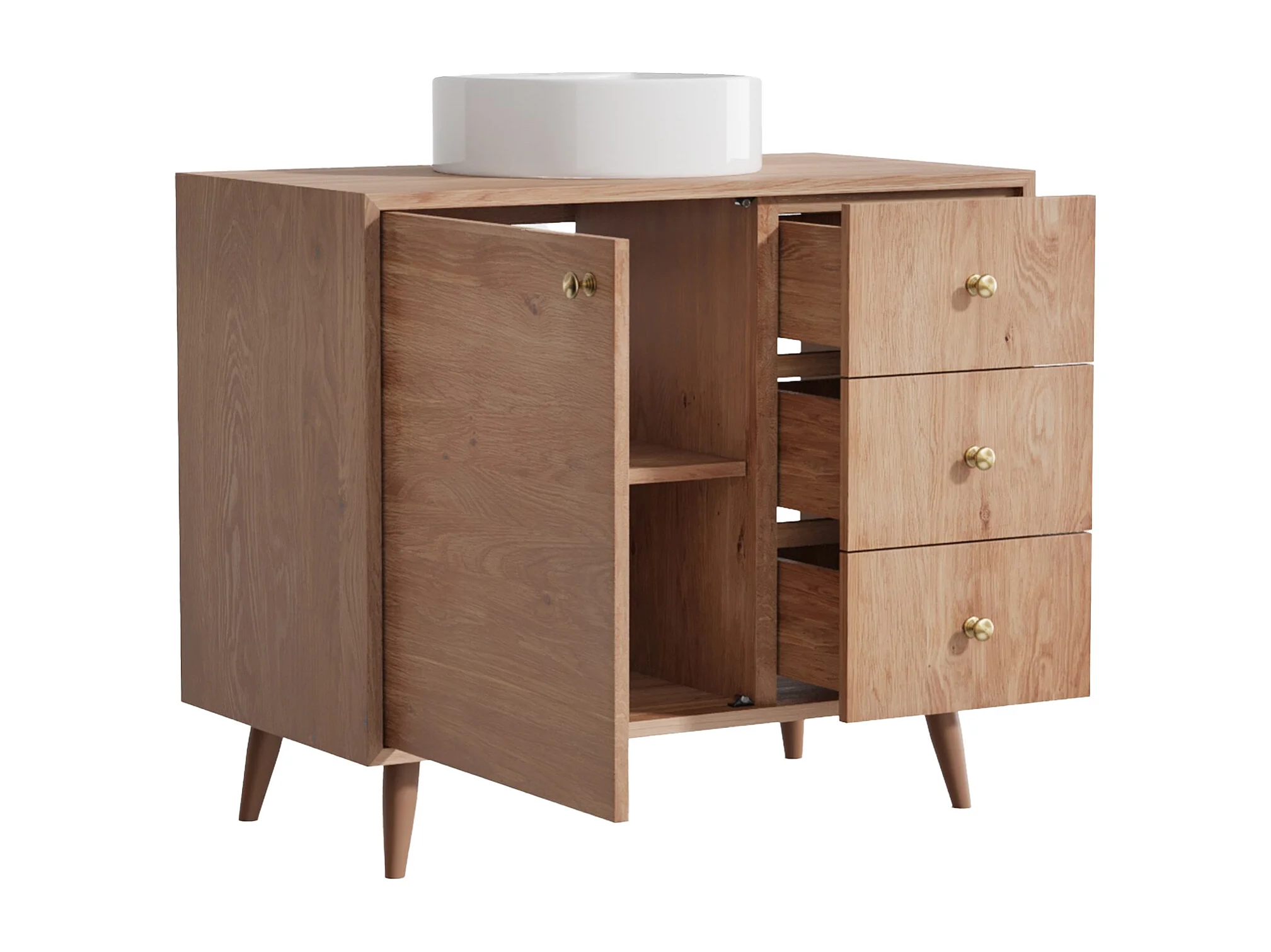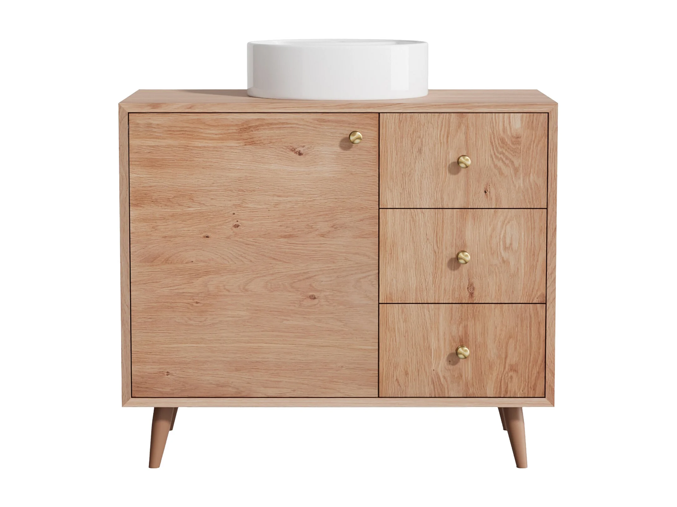Meuble de salle de bain en chêne massif avec vasque à poser ronde - Naturel clair - 93 cm - ZARENO