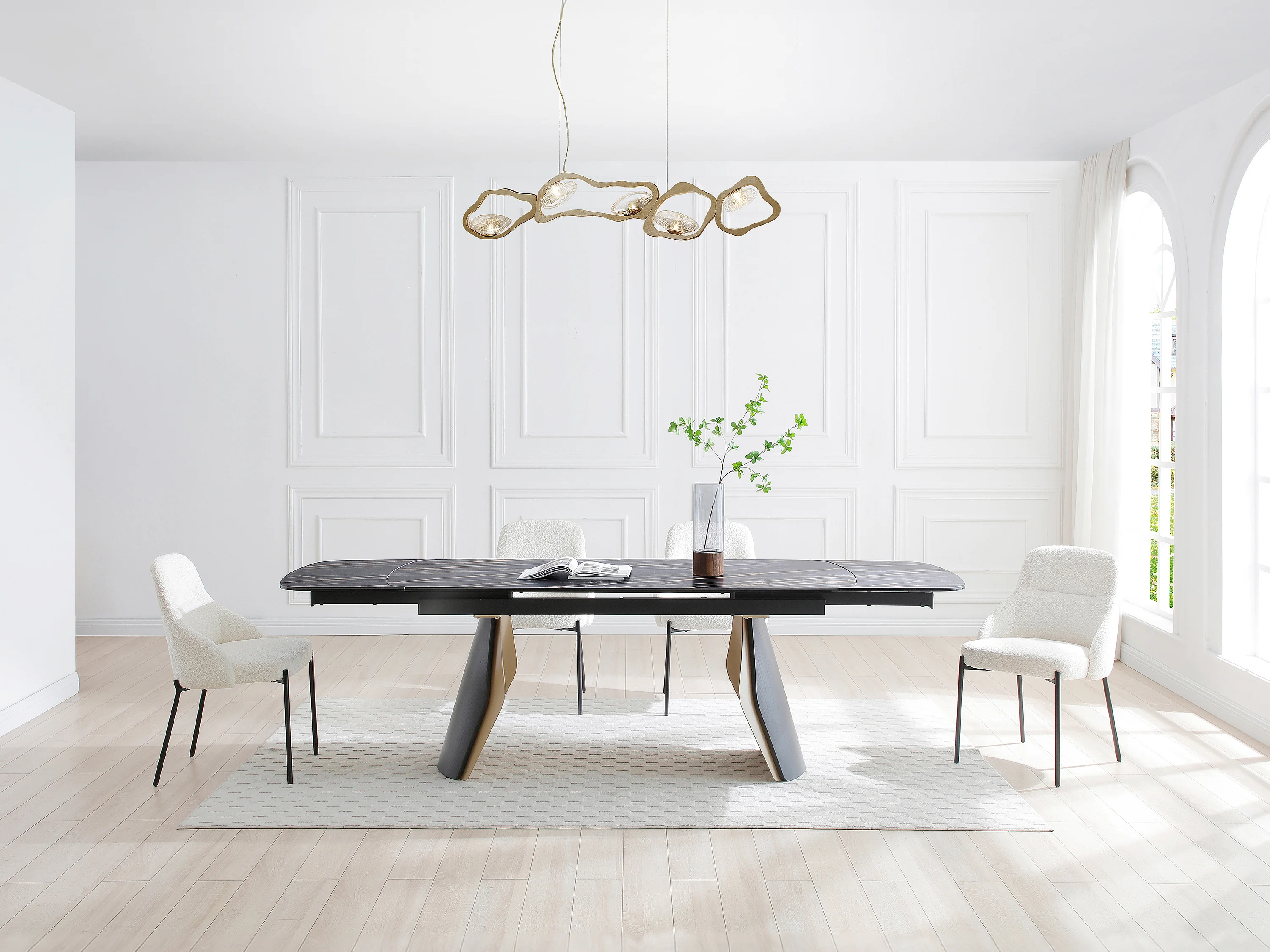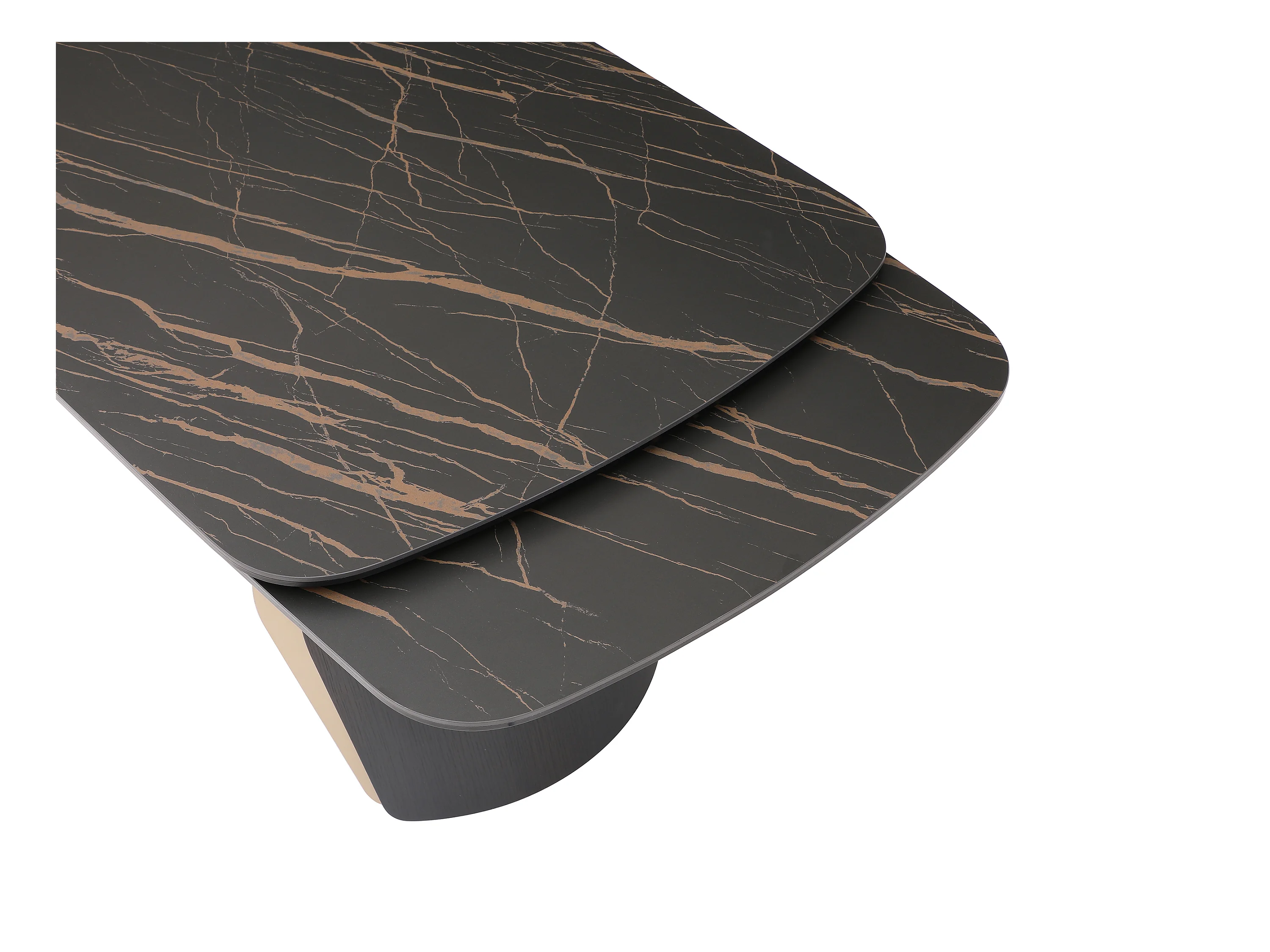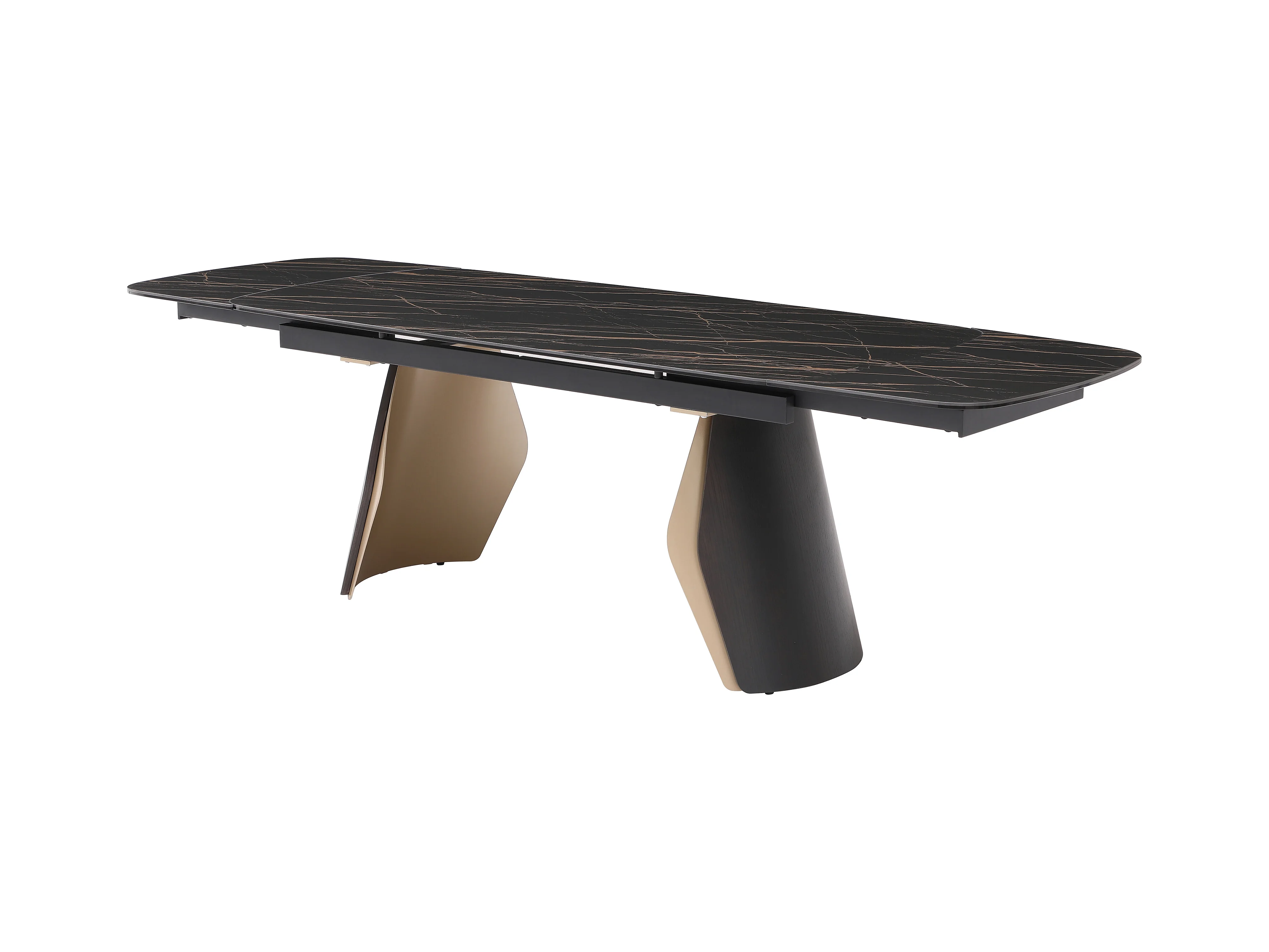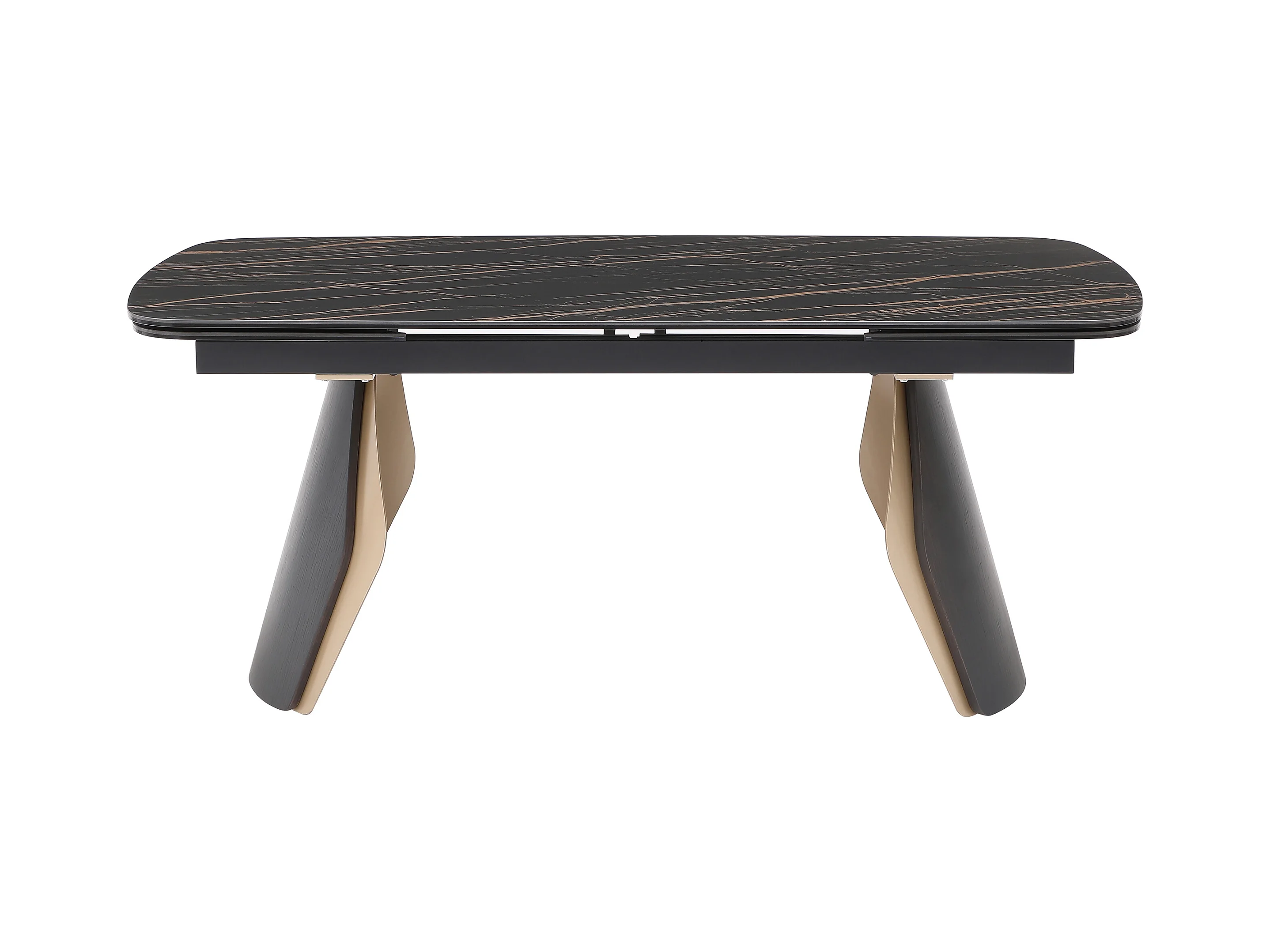 Table à manger extensible 6 à 10 personnes en céramique, verre trempé et métal - Effet marbre noir et doré - ZINORIA de Maison Céphy